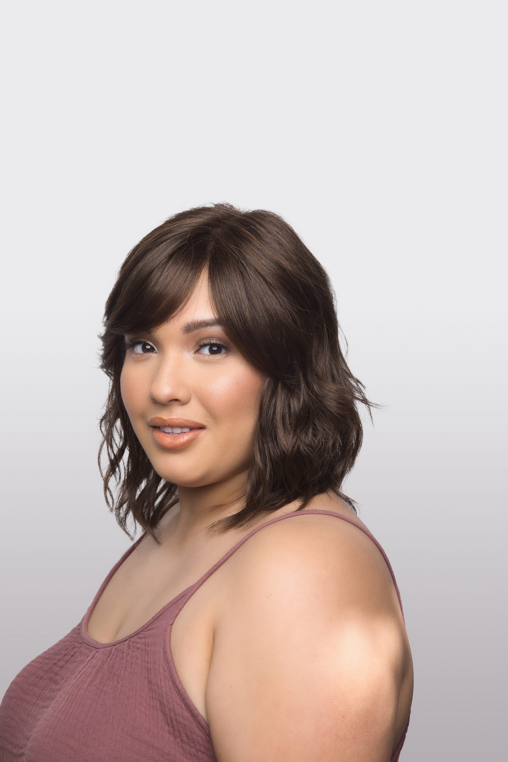 Braylen from our Amore Collection is a mid-length synthetic wig. This wavy ready-to-wear wig is a fun and playful wig with medium density. If you are looking for that beachy wavy curl pattern with fringe this is the wig for you. Our Braylen cap construction is Double Monofilament and lace front. Its Double Monofilament cap construction is combined with calibrated machine wefting along the sides and back. Braylen cap includes polyurethane tape tabs along the front and adjustable tabs in the back neck area, to allow for comfortable fit. The result is a comfortable fit with a natural look that is both fashionable and easy to wear.
